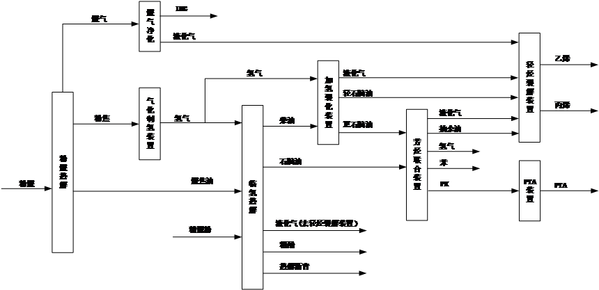 規(guī)劃以煤炭資源為基礎,將煤化工領域的粉煤熱解、焦油加氫、煤氣凈化以及石化領域的加氫裂化、芳烴聯(lián)合、輕烴芳構化等生產技術進行耦合,實現(xiàn)煤炭分質利用制芳烴,完成煤炭的分質、清潔、高效轉化,減少了對石油原料的依賴性,實現(xiàn)了煤代原油大批量生產芳烴的可能性。