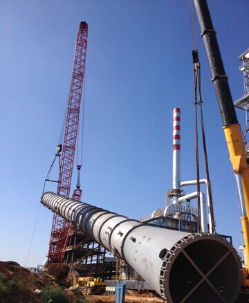 自第一臺(tái)設(shè)備進(jìn)場(chǎng)以來,我項(xiàng)目部在業(yè)主、監(jiān)理的正確指導(dǎo)和大力幫助下,大型設(shè)備吊裝工作順利推進(jìn),隨著2014年9月20日“兩塔一罐”(焦化分餾塔、加氫分餾塔、焦化緩沖罐)精確就位,400噸吊車開始退場(chǎng),預(yù)示著全場(chǎng)大型設(shè)備吊裝工作圓滿結(jié)束。本工程大型設(shè)備數(shù)量多,吊裝工作量大,框架內(nèi)重型高壓設(shè)備復(fù)雜,設(shè)備平面布置緊湊。焦化分餾塔高61米,總計(jì)130余噸,吊車占位空間窄小,…