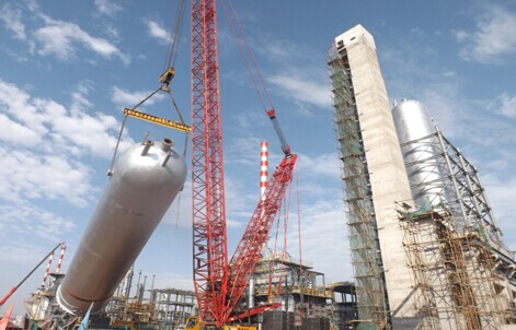 2014年7月15日早上8點(diǎn)整,在陜西東鑫垣勝幫項(xiàng)目現(xiàn)場(chǎng),由大連金州重型機(jī)械有限公司承建制造的焦炭塔進(jìn)行吊裝就位,焦炭塔高位32米,直徑6.1米,總重量為185T,采用了400T的履帶吊作為主吊,300t汽車吊作為溜尾吊車進(jìn)行吊裝,經(jīng)過近2個(gè)小時(shí)的工作,焦炭塔順利就位。焦炭塔平穩(wěn)起吊 塔體基本吊起,這時(shí)重量的90%由400T履帶吊承擔(dān) 履帶吊進(jìn)行180度轉(zhuǎn)身焦炭塔基本就位