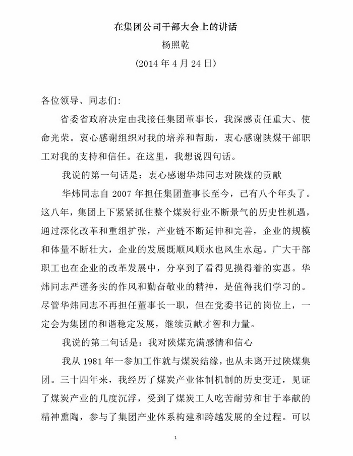 4月24日上午,陜西煤業(yè)化工集團(tuán)公司召開(kāi)干部大會(huì),宣布省政府任免文件。省委組織部副部長(zhǎng)田曉東、省國(guó)資委黨委書(shū)記孫安會(huì)出席會(huì)議,集團(tuán)公司領(lǐng)導(dǎo)班子全體成員、監(jiān)事會(huì)主席、集團(tuán)機(jī)關(guān)各部門負(fù)責(zé)人及所屬基層單位黨政主要負(fù)責(zé)人參加了會(huì)議。會(huì)議由孫安會(huì)主持。 省委組織部副部長(zhǎng)田曉東作講話 省國(guó)資委黨委書(shū)記孫安會(huì)宣讀文件會(huì)上,首先由孫安會(huì)宣讀了省政府任免文件,宣布楊照乾任…