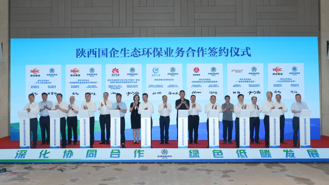 6月20日,“深化協(xié)同合作·推動(dòng)綠色發(fā)展”陜西國(guó)企生態(tài)環(huán)保業(yè)務(wù)合作座談會(huì)在西安召開(kāi)。陜西環(huán)保集團(tuán)與3戶駐陜央企、16戶省屬企業(yè)攜手共建生態(tài)環(huán)保領(lǐng)域產(chǎn)業(yè)發(fā)展及開(kāi)放合作體系,共同推進(jìn)陜西環(huán)保產(chǎn)業(yè)高質(zhì)量發(fā)展。省國(guó)資委黨委書(shū)記任國(guó),省生態(tài)環(huán)境廳黨組成員、副廳長(zhǎng)姚曉軍,省國(guó)有企業(yè)監(jiān)事會(huì)主席王春玲出席。