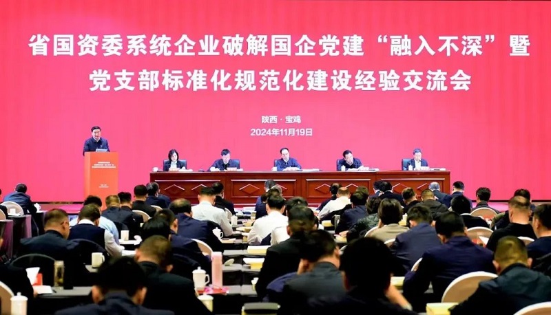 11月19日,陜西省國資委系統(tǒng)企業(yè)破解國企黨建“融入不深”暨黨支部標(biāo)準(zhǔn)化規(guī)范化建設(shè)經(jīng)驗(yàn)交流會在寶雞召開。省國資委黨委書記任國出席會議并講話。省國資委黨委委員、副主任楊愛民主持會議,并通報(bào)省屬企業(yè)黨委前置研究情況穿透式評估結(jié)果。省國資委黨委委員、駐委紀(jì)檢組組長徐永兵通報(bào)省國資委系統(tǒng)清廉國企建設(shè)示范先行單位檢查驗(yàn)收結(jié)果。省國有企業(yè)監(jiān)事會主席王春玲通報(bào)省國資委系統(tǒng)企業(yè)標(biāo)準(zhǔn)化規(guī)范化建設(shè)示范黨支部檢查驗(yàn)收結(jié)果。