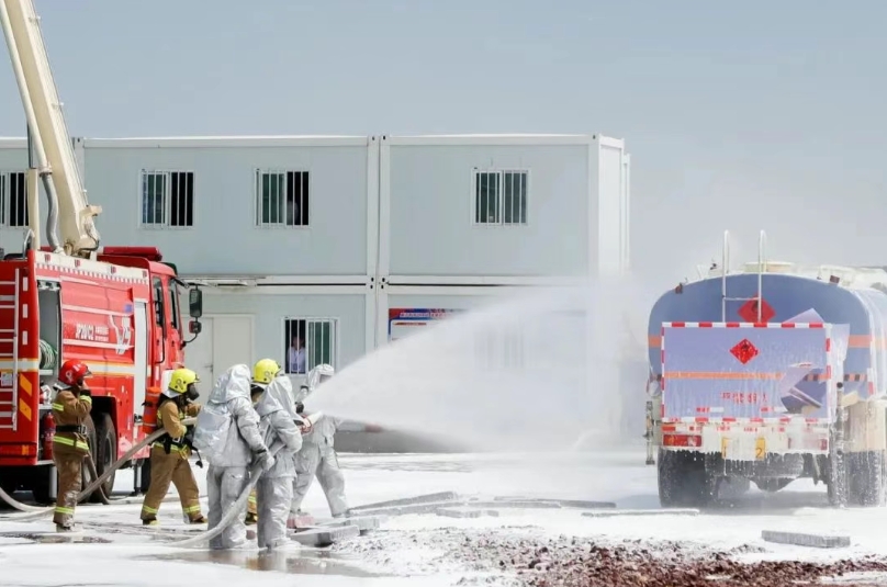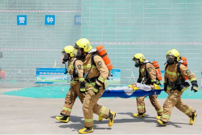 本次演練創(chuàng)新采用虛實(shí)結(jié)合、科技應(yīng)用與第一視角模式,模擬腳手架坍塌、柴油罐車起火、丙烯球罐泄漏等多起事故,檢驗(yàn)榆林化學(xué)與建設(shè)集團(tuán)多類型事故并發(fā)處置能力。事故模擬發(fā)生后,兩家單位迅速啟動應(yīng)急預(yù)案,充分發(fā)揮高科技設(shè)備與技術(shù)應(yīng)用優(yōu)勢,精準(zhǔn)定位7名被困人員位置,聯(lián)動陜煤集團(tuán)專業(yè)救援力量開展緊急救援。演練歷時(shí)一個(gè)半小時(shí),成功解救并疏散“被困人員”,高效完成各項(xiàng)任務(wù)。
