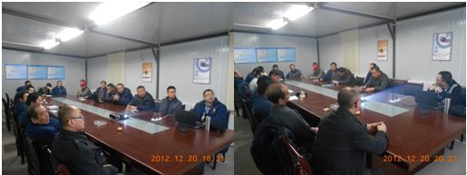 隨后,在建豐現(xiàn)場(chǎng)會(huì)議室舉行了2012年工作總結(jié)及交流會(huì),會(huì)議由周經(jīng)理主持,除張龍凱、朱強(qiáng)和柯兆雪外,部門所有員工參加了會(huì)議。