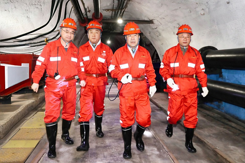 在井下現(xiàn)場,趙福堂實地查看了礦井生產(chǎn)系統(tǒng)、災(zāi)害治理情況,聽取了盤區(qū)接續(xù)、系統(tǒng)建設(shè)、重點項目等工作匯報,并與現(xiàn)場人員進行了深入交流。