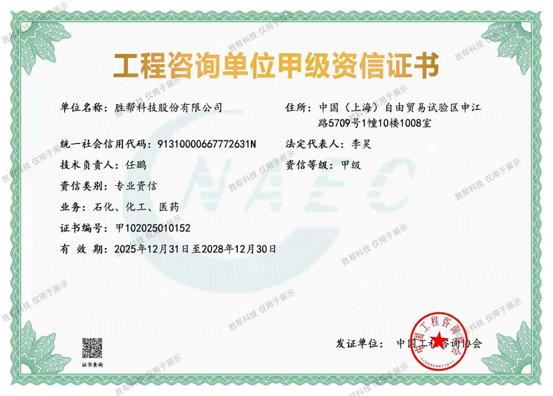 此次甲級資信的成功更新,既是對過往深耕積淀的高度肯定,更是對未來開拓奮進的有力鞭策。當前,隨著“雙碳”目標、新基建等國家戰(zhàn)略的深入推進,工程咨詢行業(yè)正迎來數(shù)字化、綠色化轉(zhuǎn)型的全新機遇。站在新的發(fā)展起點,勝幫科技將以此次資質(zhì)更新為契機,進一步強化技術創(chuàng)新與團隊建設,持續(xù)優(yōu)化服務流程,積極拓展服務領域,全力打造涵蓋規(guī)劃咨詢、項目評審、全過程管理的全鏈條高端咨詢服務體系,為推動化工、能源等領域的高質(zhì)量發(fā)展注入更強動能。