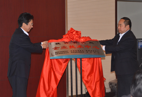 集團(tuán)公司副總經(jīng)理尚建選與建設(shè)集團(tuán)黨委書記、董事長(zhǎng)喬建華為建設(shè)集團(tuán)省級(jí)企業(yè)技術(shù)中心揭牌