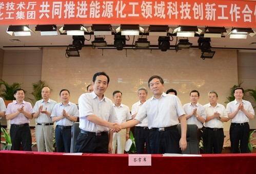 陜西省科技廳廳長李明遠(yuǎn)、副廳長安西印及科技廳相關(guān)部門負(fù)責(zé)人;陜煤化集團(tuán)董事長華煒,總經(jīng)理楊照乾,副總經(jīng)理尚建選以及陜煤化技術(shù)研究院相關(guān)負(fù)責(zé)人參加了簽字儀式。簽字儀式由省科技廳副廳長安西印主持。