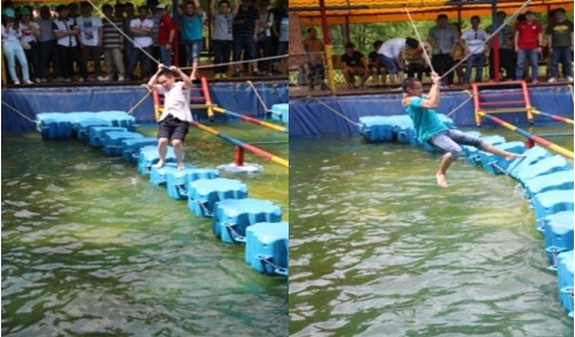 清晨8點(diǎn),車輪徐徐轉(zhuǎn)動(dòng)。經(jīng)過3個(gè)半小時(shí)的車程,順利到達(dá)青山湖風(fēng)景區(qū)。在湖畔用完午餐,大家在湖邊碼頭等待游船。游客越來越多,人聲鼎沸。大家排著長(zhǎng)隊(duì),魚貫而入,登上游船,前往水上森林。水上森林有大闖關(guān),大家玩得不亦樂乎,滿身大汗。最刺激的要數(shù)“水上大闖關(guān)”,挑戰(zhàn)者卷起褲腿,躍躍欲試。由于時(shí)間限制,我們只好依依不舍離開了水上森林。分成四組,乘坐小船返回碼頭。小船四面通透,湖風(fēng)掠過,甚是清涼。