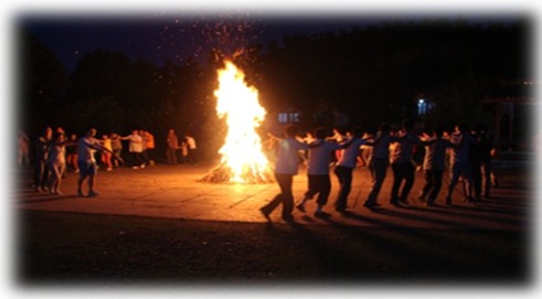 天色已黑,篝火點(diǎn)燃,兔子舞跳起來,跳起來……大家手拉手,在音樂的帶動(dòng)下,繞著火堆轉(zhuǎn)圈,火熱的氣氛被推向高潮……這時(shí),歌聲也想起來了,王總先來了一首《長(zhǎng)江之歌》,大家也來了興致,你方唱罷我登場(chǎng)。每每都是三四個(gè)人圍著一個(gè)話筒,非常熱鬧。